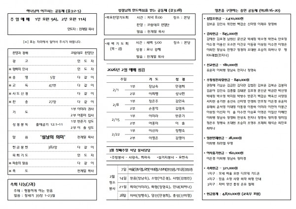 2026.02.15 주보 페이지 정보 문선균집사 메일보내기 아이디로 검색 0 4 6시간 57분전 첨부파일 02.15002.jpg (705.2K) 1 2026-02-14 21:35:45 02.15001.jpg (748.2K) 0 2026-02-14 21:35:45 짧은주소 Short URL : http://daeeunch.com/community/bbs/?t=is 주소복사 × 짧은 글주소 복사 Note! 위 주소를 클릭 후, 복사(Ctrl+C)하여 사용하세요. 다음글 목록 본문 댓글목록 등록된 댓글이 없습니다.