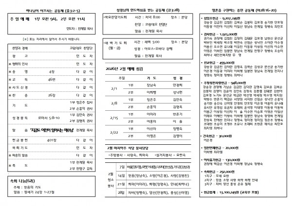 2026.02.08 주보 페이지 정보 문선균집사 메일보내기 아이디로 검색 0 23 2026.02.07 18:50 첨부파일 02.08002.jpg (662.1K) 2 2026-02-07 18:50:43 02.08001.jpg (838.1K) 0 2026-02-07 18:50:43 짧은주소 Short URL : http://daeeunch.com/community/bbs/?t=iq 주소복사 × 짧은 글주소 복사 Note! 위 주소를 클릭 후, 복사(Ctrl+C)하여 사용하세요. 다음글 목록 본문 댓글목록 등록된 댓글이 없습니다.